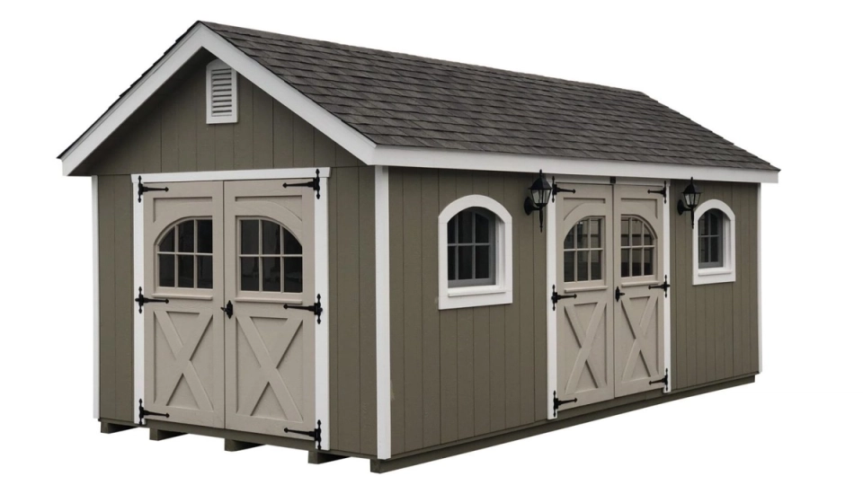 Stoltzfus Structures now offers you a new and rustic style looking Carriage shed. It was designed for people who take pride in their backyard. It give you this amazing Carriage Style look to your Property. You will love your new addition. What a beautiful place to store your toys, garden tools, mower, and lots more and still enjoy a clean, beautiful backyard. Call Stoltzfus Structures and talk to one of our Experts to customize your dream Carriage Style Shed. Also check out our Elite Carriage Shed plans for the same great features but with a 10-pitch roof and 8 foot high walls.