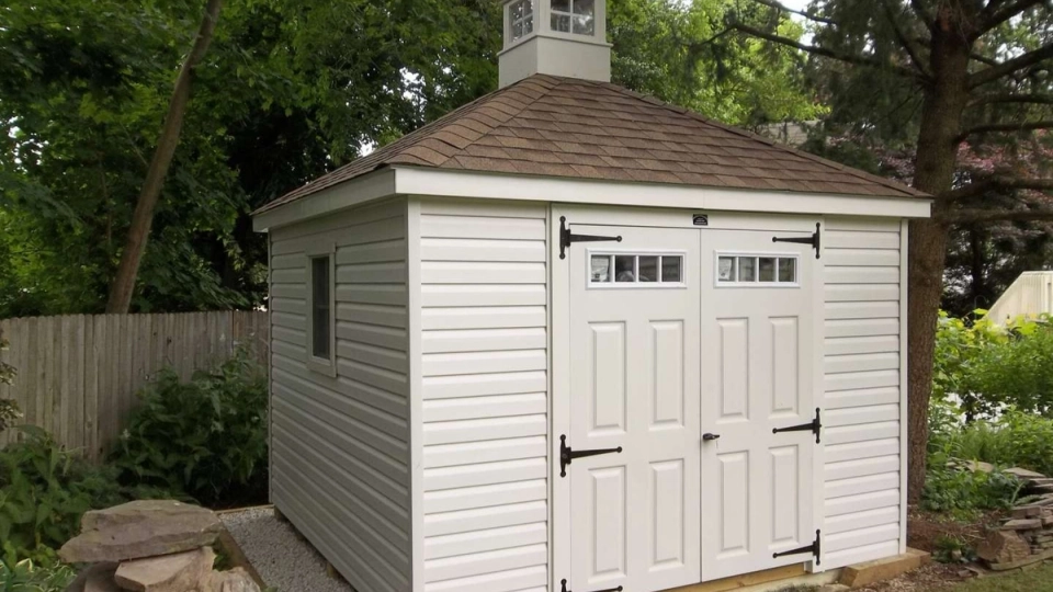 The Garden Hip roof design offers a more contemporary look with the characteristics of the garden shed, more decorative trim and includes larger windows, and shutters.